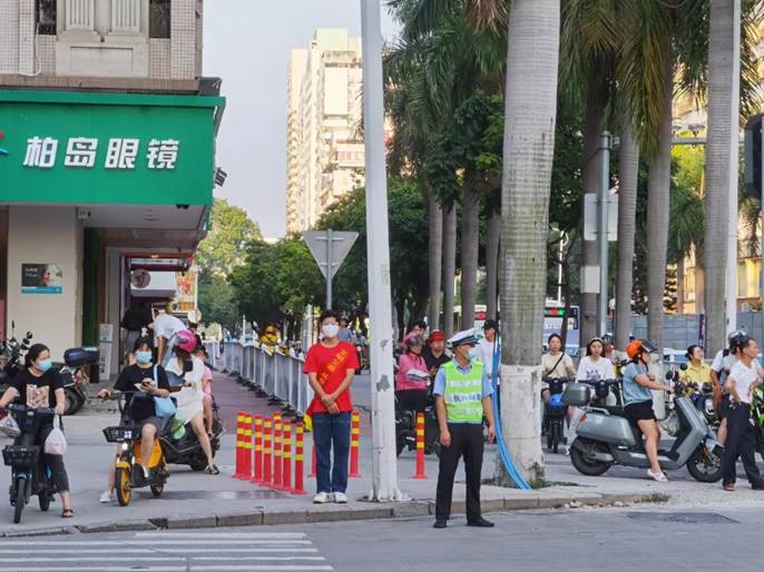 下班晚高峰时段,车流量和人流量较大,队员们认真投入在各自负责的区域进行文明交通的引导工作,并对闯红灯、乱穿马路、逆向行驶等不遵守交通规则群众进行劝导。队员们积极发挥志愿者在文明交通中示范引领作用,成为城市中一道靓丽文明风景线。