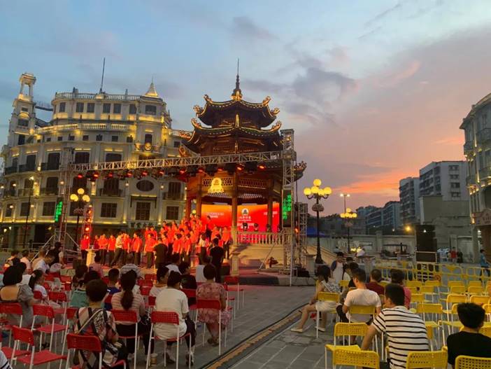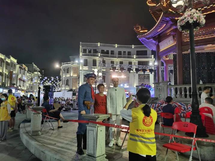 接着,深入金平区小公园新时代文明实践站,携手当地志愿者进行“戏亭印象”惠民演出的志愿服务活动,引导市民群众入座、维护秩序、整理卫生、为观看观众免费提供茶水饮料等;协助广州理工学院开展党史知识摆摊活动。