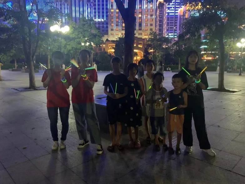 7月28日,实践团队在龙湖区全民健身广场开展“和健康相伴,与幸福同行”的荧光夜跑活动,向市民群众倡导“全民健身”的健康生活理念,加强体育锻炼,促进身心健康,提高自身免疫力,共同抗击疫情。