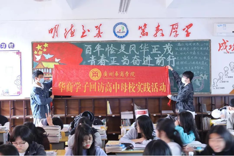 为弘扬爱校精神,增进在校大学生与中学母校的情谊,让更多高中学生了解我校,同时也为丰富华商学子假期生活,培养其社会责任感、创新精神和实践能力。今年寒假学校党委办公室、招生办公室、校团委及学生处举办寒假返家乡——回访母校社会实践活动。 参与本次活动的201支队伍(900余名学生)将于2022年寒假期间回访高中母校与母校的老师分享大学生活及所获所感,与学弟学妹们分享高考经验,为其关于大学及高考填报志愿的疑惑进行解答,同时对华商学院的办学及往年高考录取情况进行介绍。