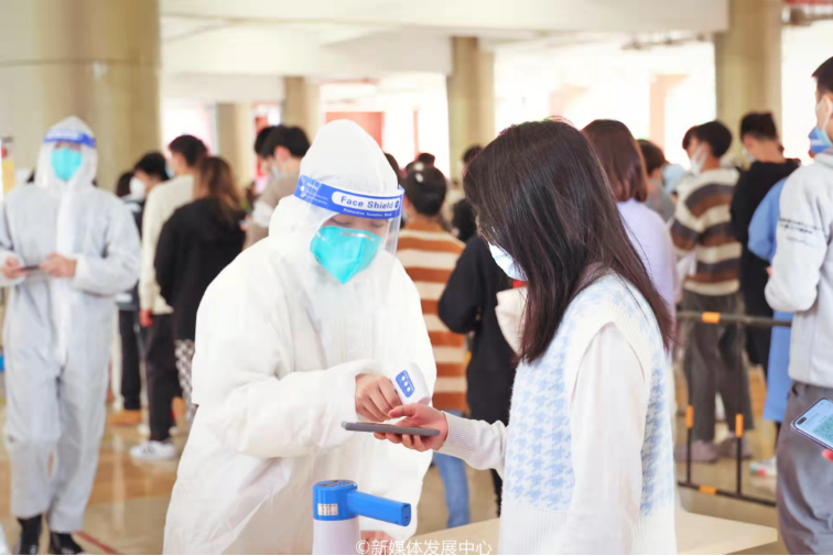 在3月15日和3月17日“三天两检”的工作中,学生志愿者积极投身于疫情防控的一线中,展现学生志愿者服务的坚定意志以及甘于奉献的精神。
