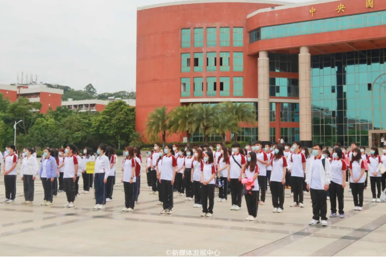 4月15日早上7:30,国家安全教育日升旗仪式在增城校区中央图书馆与四会校区操场同步进行。