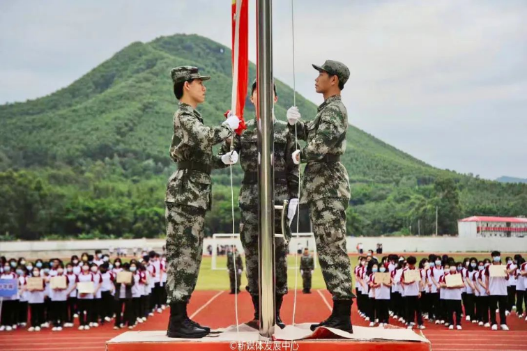 护旗手们昂首挺胸,手中紧紧握着国旗迈着坚定的步伐向前走,严肃认真的表情是对国旗的尊重,矫健的身姿是华商青年的意气风发,胸中燃着对国家安全的责任和使命。