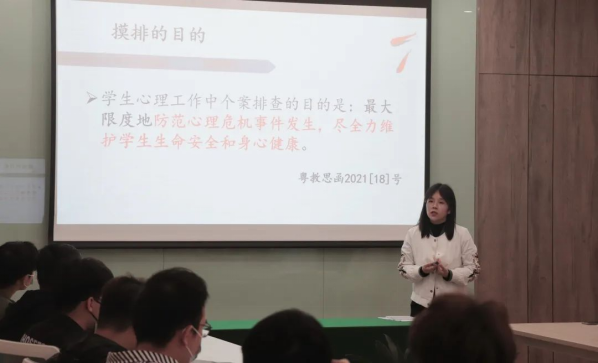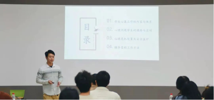 培训共涉及四个方面内容:一是学生心理健康工作的内容和体系;二是心理问题学生的摸排与应对;三是心理危机处置及安全监护;四是辅导员的工作方法,具体引导辅导员如何以更好的状态做好学生工作。