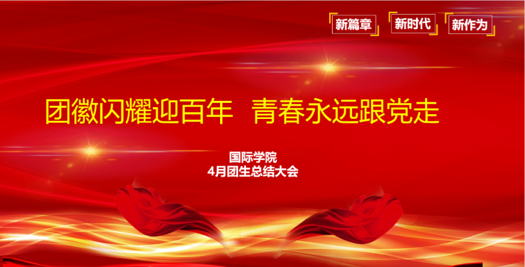 4月25日18:00,国际学院团总支在腾讯会议上开展“团徽闪耀迎百年,青春永远跟党走”团组织生活总结大会。大会展示四月团生活动视频。活动结束后,国际学院学子更清晰共青团员这个身份是有多么的平凡却重要,更加感受到佩戴团徽是多么光荣,让青春充实起来,树立良好的榜样,在中国共产党的领导下,贡献出青春力量,立足当下,努力学习,不怕困难!向党学习,大踏步踏上时代,矢志不渝,奋力走在时代前列!