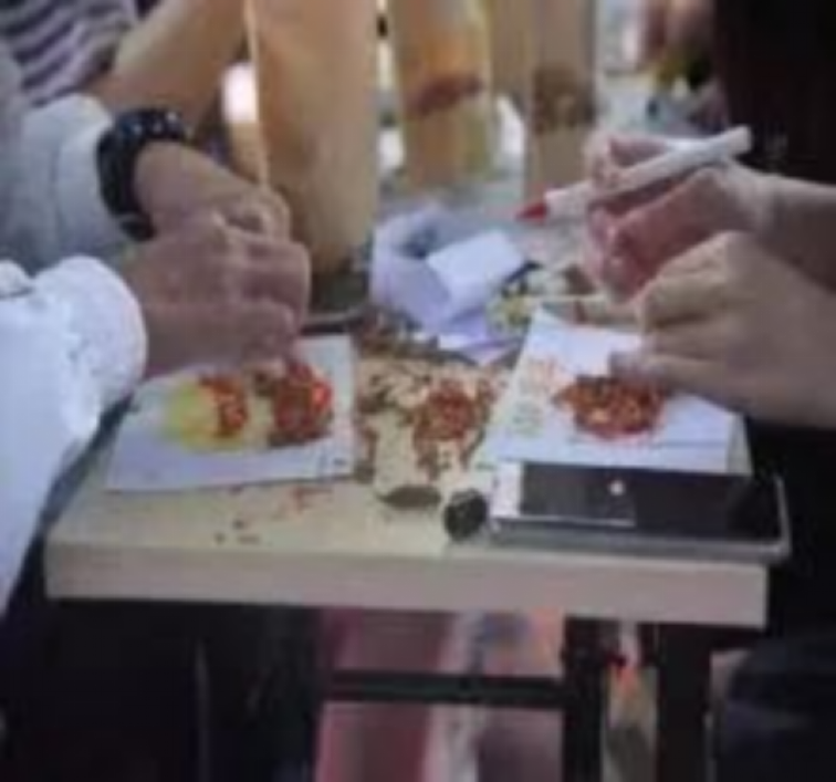 学院开展的健康医学院特色的团生活动——制作手工香囊,并摆出党徽、团徽等图案。健康医学院学予以独特的形式表达对党、对团的感情。