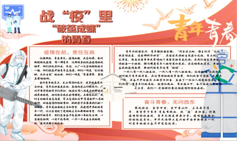 “千百年来,青春的力量和创造始终是推动中华民族勇敢前行、屹立于民族之林的磅礴力量。”国家的繁荣发展,需要依靠青年的蓬勃朝气和勇敢担当。作为新时代主力军;作为最积极最有生气的力量,用实际行动去证明在党的带领下积极发挥青春的力量,共创祖国美好明天。