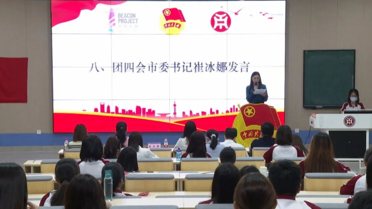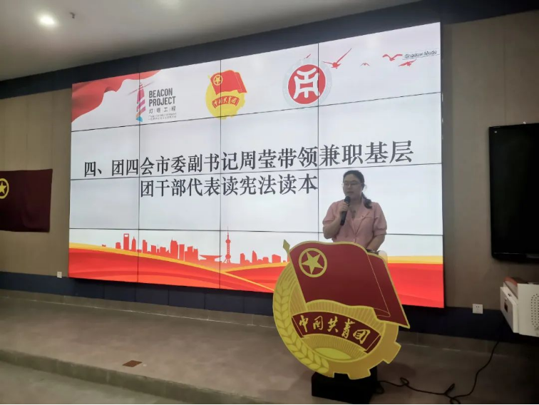 大会第四项为团四会市委副书记周莹带读宪法读本。团四会市委副书记周莹带领在场学生代表宣读《中华人民共和国宪法》第四十六条:中华人民共和国公民有受教育的权利和义务。国家培养青年、少年、儿童在品德、智力、体质等方面全面发展。