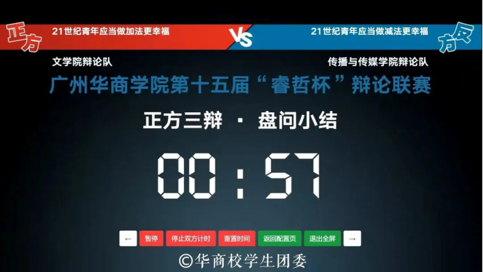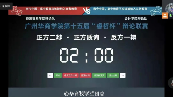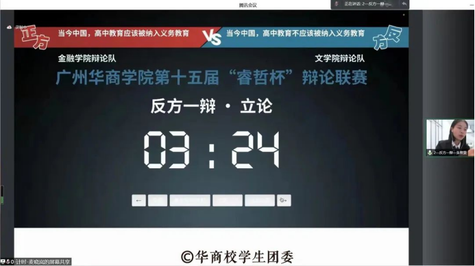 为深入辩论知识的交流,共同探讨挖掘话题内暗藏的巧妙玄机,不断思考,提升自身思辨能力,搭建自由表达思辨交流的良好平台。广州华商学院第十五届“睿哲杯”辩论联赛初赛、半决赛皆在线上举行。