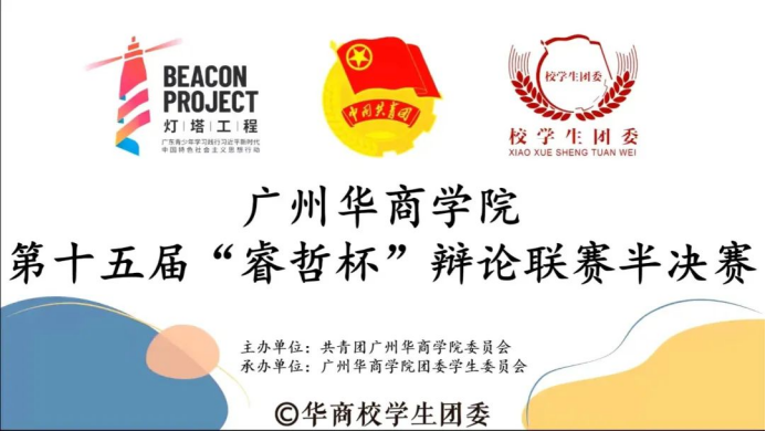 2022年4月12日-2022年5月3日,广州华商学院第十五届“睿哲杯”辩论联赛于腾讯会议举行。参与比赛的队伍为广州华商学院各二级学院辩论队。