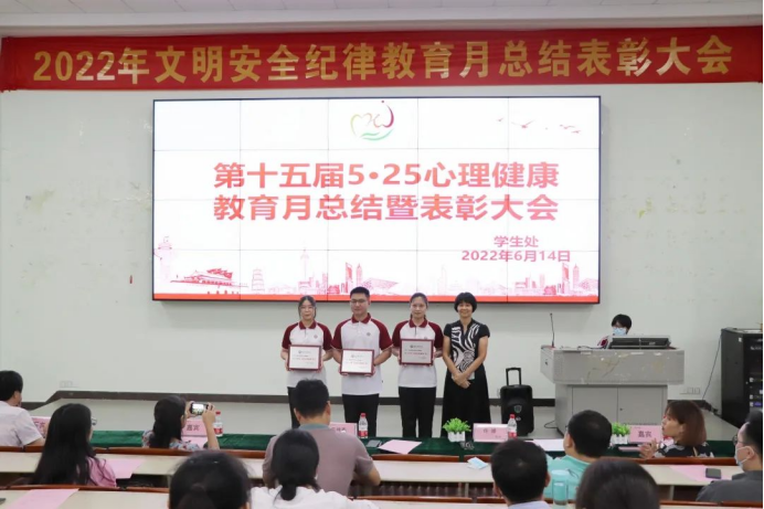 最后,希望学生处心理健康教育与辅导中心要继续深入学生群体,积极宣传、普及心理健康知识,不断提升学生的心理健康水平,我校第十五届5·25心理健康教育月总结暨表彰大会至此结束。