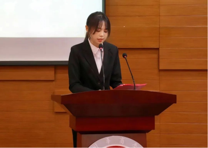 四会校区负责人代表发言。龙洁慧表示与同伴相互配合下顺利完成本学期的工作。她表示,自身工作仍存在不足,但努力寻找解决方法来提高工作质量。通过这学期的工作她与行政监管部的缘分更加紧密也和部门小伙伴更加熟悉,在他们身上学习到了自己不足的地方,思想政治理论微视频大赛离不开每一位工作人员的努力,也对部门的师兄师姐的教导表示衷心的感谢。