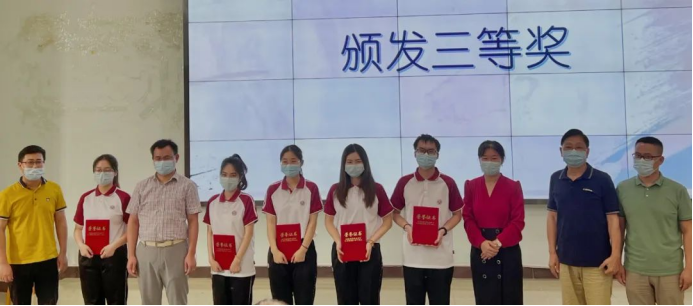 最后,主持人公布获奖名单并邀请嘉宾为获奖选手颁奖。荣获一等奖名单:19本广告学(专升本)2班 《疫情下人与自然关系的另类洞察》;荣获二等奖名单:19本网络与新媒体班《不负青山,和谐共生》、21本护理学3班《我看生态文明》、19本会计学(专升本)3班《我看马克思主义》;荣获三等奖名单:19本英语(专升本)6班 《读<论持久战>,学矛盾理论》、19本会计(专升本)11班《我看宇宙》、19本学前教育(专升本)1班《认识无限发展与终身学习》、19本英语(专升本)1班《科技创新是第一生产力》、19本行政管理(专升本)4班《久久为功,共建美丽中国》。