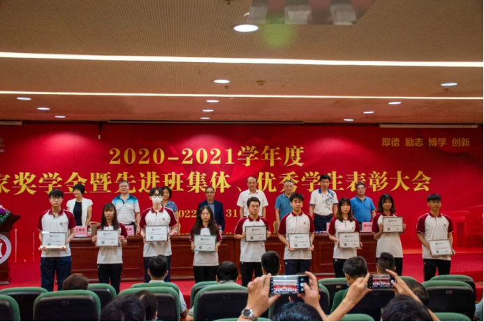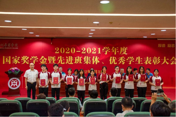 党委书记苏宁宣读表彰决定。苏宁书记宣读了《广州华商学院关于表彰21名学生荣获2020-2021学年度国家奖学金的决定》《广州华商学院关于表彰570名学生荣获国家励志奖学金的决定》和《广州华商学院关于表彰2020-2021学年先进班集体、优秀学生和优秀学生干部的决定》等决定。苏宁书记对以上获奖的个人和集体表示祝贺,鼓励同学们向受表彰的同学和班集体学习,争做一名德智体美劳全面发展的优秀大学生,希望受表彰的同学和班集体再接再厉,发挥模范作用。