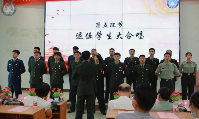 第八环节为优秀退伍学生事迹分享。21届毕业生黄煜峰与我们分享了他入伍的初衷、经历、体会等方面,并提醒有入伍意向的同学体检前要保持良好心态,入伍后在部队里要把握好机会,无论是在部队还是学校,我们应保持自律意识,充实自己、提升自己。