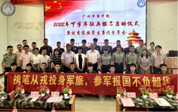 2022年6月7日下午15:30,学校武装部在励志楼C408隆重举行了广州华商学院2022年下半年征兵报名启动仪式暨优秀退伍学生事迹分享会。