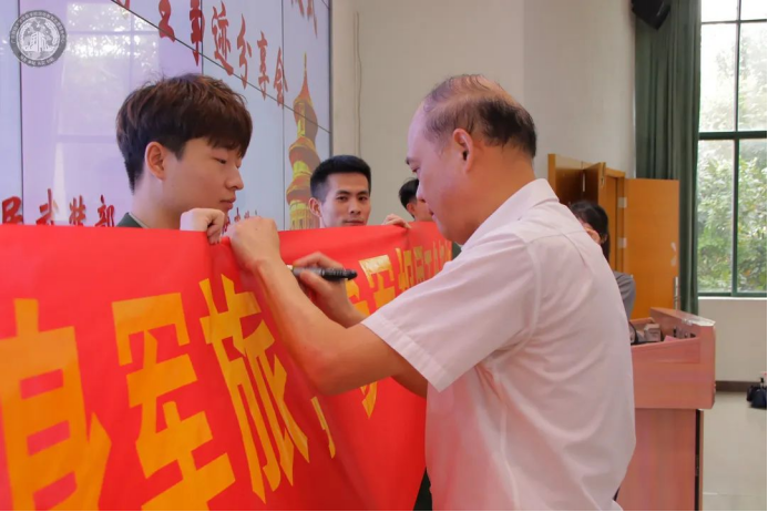 第三环节为学校领导致辞。首先,苏宁书记对出席大会的领导、嘉宾和师生们表示热烈的欢迎。对一直以来指导、支持我校征兵工作的增城区人民武装部和有关单位表示衷心的感谢。我校历来高度重视征兵工作,始终坚持以习近平强军思想为指导,深入贯彻落实习近平总书记关于加强和改进兵役工作重要指示批示精神,突出学校主阵地和大学生的征集主体,强化爱国主义教育,弘扬崇军尚武精神。他表示,国无防不立,民无兵不安,号召华商学子们携笔从戎投身国防,在强军兴军中彰显人生的价值。最后,他强调,征兵工作责任重大,使命光荣,我们一定要以高度负责的态度,务实求真的精神,全力做好本次的征兵工作,努力营造良好的征兵氛围,以更优异的成绩迎接党的二十大的胜利召开。