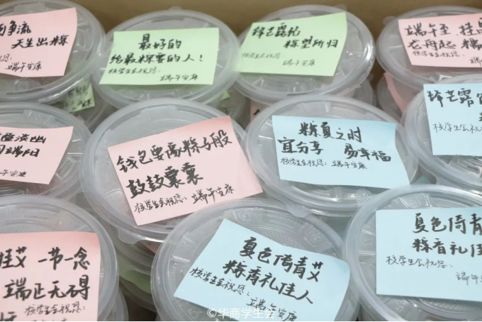 活动现场,络绎不绝,欢声笑语,粽香四溢。活动期间,党委宣传部部长、校团委刘苗书记来到增城校区活动现场,为师生们赠送大礼包。校学生会的同学还为学校里各个工作岗位上辛勤付出的工作人员送去节日祝福。师生、教职工们纷纷在朋友圈里晒出免费领取的端午节大礼包,晒出满满的幸福感。校团委共为师生准备了2000多份端午礼包。