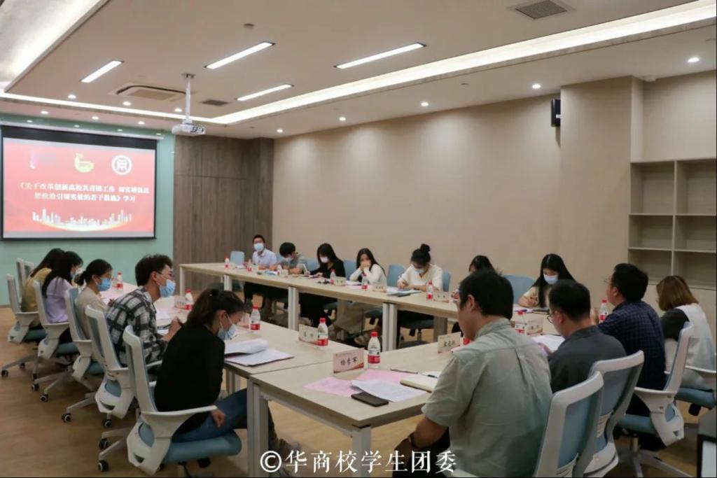 陈刚书记为各二级学院团总支书记、学生会指导老师解读《关于改革创新高校共青团工作切实增强思想引领实效的若干措施》、开展“喜迎二十大,永远跟党走,奋进新征程”工作部署以及为二级学院召开团代会进行工作指引。陈书记强调,要坚持党的全面领导,压实校、院系团组织对学生会、学生社团指导管理的工作责任,从工作职能协同、组织体系设置、骨干力量配备等机制上强化团组织思想政治引领,指导学生会重点做好服务同学需求。各团干部、团学组织和学生骨干必须认真学习相关文件,明确工作方向,结合我校共青团工作实际,对标具体要求,提高工作成效。