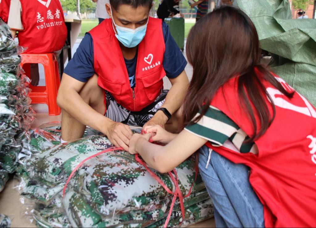 活动期间,志愿者驻扎在宿舍楼下,同学们怀揣着贡献的志愿心纷纷到现场捐赠,将爱传递。