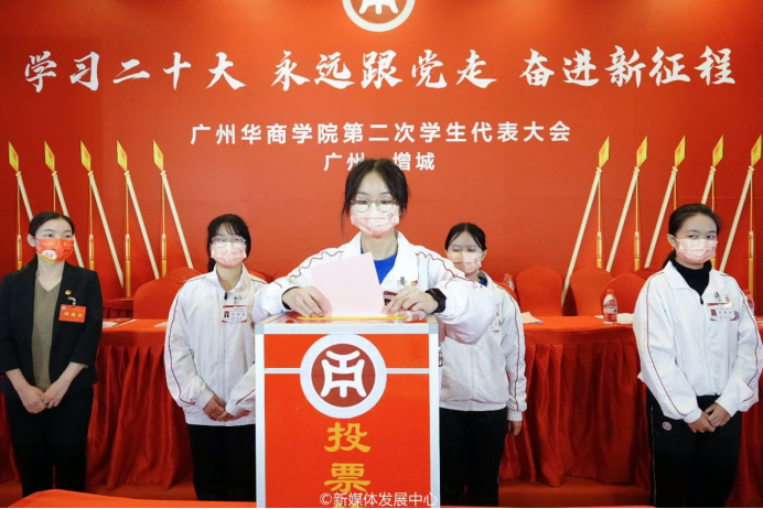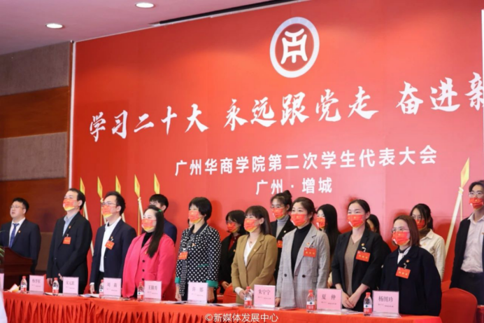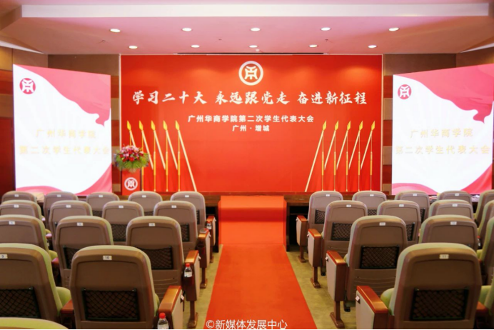 12月3日,广州华商学院第二次学生代表大会在增城校区召开。本次大会严格落实疫情防控相关要求,采取线上、线下结合的形式举办,以增城校区国际会议中心四楼报告厅为主会场,励志楼B207、C408、腾讯会议等共设置五个分会场。四会校区师生线下集体观看直播学习。
