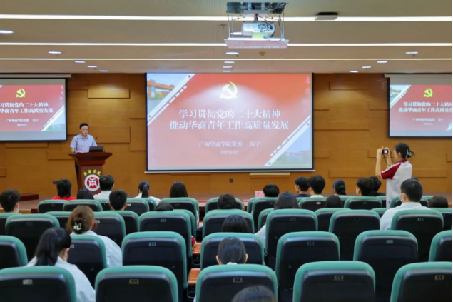 苏宁书记从“全面系统学习贯彻党的二十大精神,更好凝聚思想共识、激发奋进力量”“传达学习广东省高质量发展大会精神,强化党建引领,以高质量党建推动学校事业高质量发展”“以习近平总书记系列重要讲话精神为指引,践行四讲,推动华商青年工作高质量发展”三个方面展开授课。苏书记强调,2023年是全面贯彻落实党的二十大精神的开局之年,也是学校新征程中具有特殊重要意义的一年,广大学校共青团干部、学生骨干,要更加深刻领会新时代赋予共青团的历史使命和责任担当,要进一步强化自身建设,紧跟党走,从严治团,焕发共青团昂扬向上的时代风貌,推动华商青年工作高质量发展。党的二十大擘画的宏图盛景,是国家的、民族的、人民的,更是青年的,广大青年要牢记习近平总书记的殷切嘱托,在党的领导下,以理想者、担当者、吃苦者、奋斗者的姿态,奋进新征程,诠释新青春,创造新业绩。我们要继续知重负重、砥砺前行,在应对挑战、攻坚克难中不断激发新动能,为高质量青年工作建设、学校高质量内涵式发展贡献青春力量!