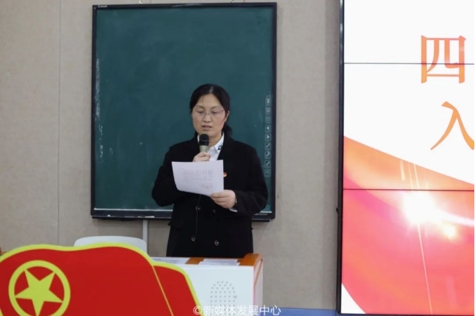 新学员代表郑子懿作表态发言。她表示要珍惜这次宝贵的学习机会,严于律己,在学习中做表率,在生活中当模范,当好党的助手和后备军。并向大家发出三点号召:第一,志存高远,坚定理想信念。我们要认真学习党的先进理论和思想,用党的科学理论武装头脑,在思想中洗礼、在实践锻造中不断增强做中国人的志气、骨气、底气!第二,脚踏实地,坚持学习主线。要珍惜韶华、不负青春,努力学习掌握科学知识,锤炼过硬本领。第三,自觉担责,争当表率模范。党和人民事业发展离不开一代又一代有志青年的拼搏奉献。我们要以青年行动为社会发展做贡献,在学习、工作及其他社会活动中起模范带头作用,让青春在祖国和人民最需要的地方绽放绚丽之花!