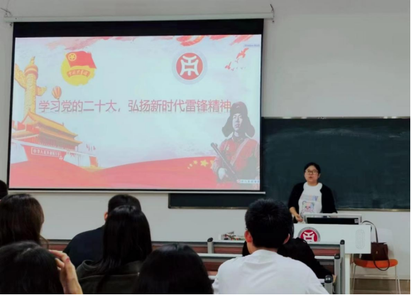 为全面学习宣传贯彻党的二十大精神,学习贯彻习近平总书记对深入开展学雷锋活动作出的重要指示精神,争做有理想、有本领、有担当的新时代好青年,3月,金融学院在增城校区励志楼B205和四会校区8号楼302分别组织开展了“学习党的二十大,弘扬新时代雷锋精神”主题团课,金融学院团委书记张文杰和副书记赵颖祯授课,带领金融学院团委及各团支部学生骨干共同深入学习党的二十大精神及关于深入开展学雷锋活动的重要指示精神,分享当代雷锋故事,弘扬新时代雷锋精神。作为新时代青年,我们要以实际行动传承和践行雷锋精神,弘扬“奉献、友爱、互助、进步”的志愿服务精神,勇担责任使命。