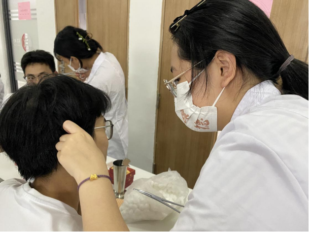 义诊活动开始前,为推动活动顺利进行,健康医学院专任教师孔显坤对学生志愿者们进行统一技能培训,提升专业技能,为师生提供优质服务。义诊志愿服务活动中,志愿者们为大家带来心电图、量血压、中医推拿、贴耳穴、真空拔罐、电脑低/中频治疗、红外线治疗等中医特色医疗服务。现场还有中药特色茶饮以及中药香囊派发。学生志愿者们热情接待到场师生,为大家带来专业科普和治疗,加深对中医药的了解。