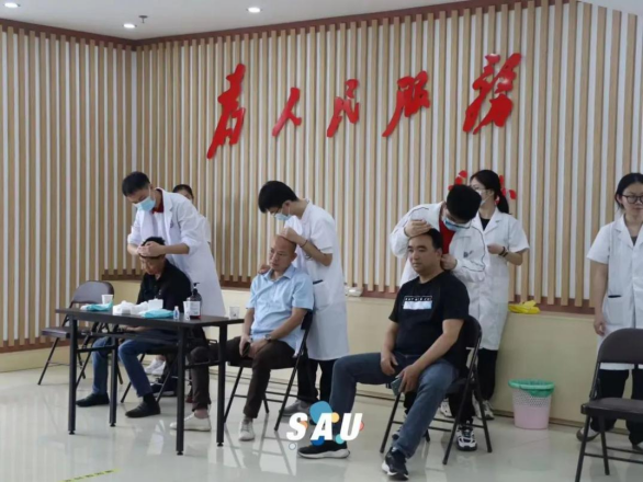 此次义诊服务活动包括中医推拿按摩、特色茶饮及健康养生咨询。志愿者们针对村民群众的身体实际情况,耐心地与他们沟通,介绍预防肩颈问题、养生与保健等知识;并悉心提醒大家日常注意事项,提出饮食、运动等生活小贴士,满足大家养生保健服务需求,提高广大群众的自我保健意识和健康水平。