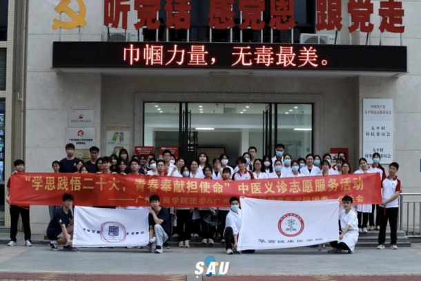 ——校外义诊。4月22日下午,校团委联合健康医学院团委、学生会及粤文化协会,55名学生志愿者赴增城区下塱开发路太平新村开展“学思践悟二十大,青春奉献担使命”中医义诊志愿服务活动,为100多名村民、群众带来专业中医服务与关怀。
