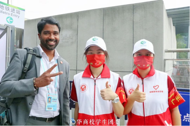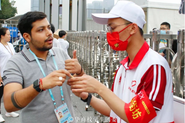 在校团委陈刚书记与夏仲老师的带领下,志愿者们顺利到达会场并参与岗前培训,迅速到各自岗位上开展志愿服务工作。我校青年志愿者在严格落实疫情防控要求前提下,用青春汗水诠释志愿服务内涵,为国外客商提供语言翻译,场馆指引,办证咨询,交通疏导等贴心实用的志愿服务。
