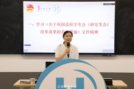 会议第三项议程,校学生会主席团成员陈悦作2023年春季学期学生会重点工作介绍。
