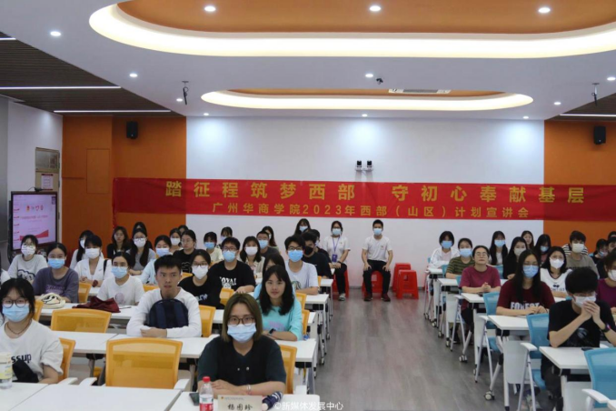 逐梦西部献青春,服务基层显担当。为深入开展学习贯彻习近平新时代中国特色社会主义思想主题教育,深入学习领会习近平总书记给中国农业大学科技小院同学们的重要回信精神,贯彻落实党的二十大精神,弘扬“奉献、友爱、互助、进步”的志愿精神,进一步加强我校师生对西部(山区)计划的了解,引导和鼓励我校应届毕业生到基层就业、到乡村工作,推进广东志愿服务西部(山区)计划、志愿服务乡村振兴行动的志愿者招募工作,由校团委主办、校青协承办的广州华商学院2023年西部(山区)计划宣讲会顺利开展。宣讲会线上线下同步进行。我校团委陈刚书记,校团委老师夏仲、杨图珍线下参加会议。志愿服务西部(山区)计划在职志愿者茅小怡、李翠珊、曹灏、郑泽君、陈欣渝作线上分享,活动还有100余名(其中线下100余名,线上70余名)有志于服务西部、服务基层的应届毕业生、在校生参加。