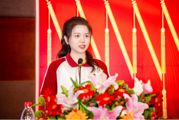 广东省优秀共青团员周婧同学作为获奖代表发言。五四青年节前夕,习近平总书记给中国农业大学科技小院的同学们回信,提出殷切期望,并向全国广大青年致以节日的祝贺。周婧同学表示,我们应该将习近平总书记的鼓励和希望转化为前进的动力,志存高远、脚踏实地,用实际行动践行青春使命,用智慧和汗水创造新的奇迹。她号召同学们:一、坚定信念,树立远大理想;二、脚踏实地,练就过硬本领;三、主动尽责,彰显青年担当。