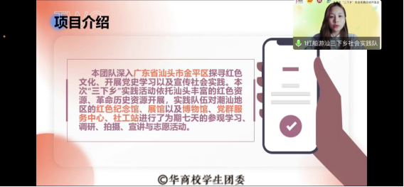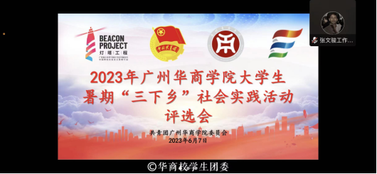 为深入开展学习贯彻习近平新时代中国特色社会主义思想主题教育,贯彻落实党的二十大精神和习近平总书记关于青年工作的重要思想,落实广东省百千万工程,引导和帮助广大华商青年学生上好与现实相结合的“大思政课”,努力成长为担当民族复兴大任的时代新人,在社会实践中贡献青春力量。根据广州华商学院 2023 年暑期“三下乡”社会实践活动预通知有关安排,我校团委于 2023年6月7日和6月15日在腾讯会议开展 2023 年广州华商学院大学生暑期“三下乡”社会实践活动评议会。本次校内评议会分为两轮开展。首轮未入选的实践队伍根据评委意见修改完善策划书、ppt后进行二轮展示,综合两轮评分产生最终结果。