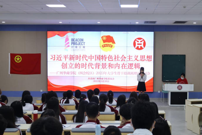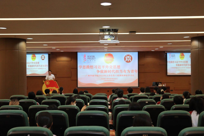 为深入开展学习贯彻习近平新时代中国特色社会主义思想主题教育,全面领会习近平总书记有关青年工作的重要思想,进一步引导和鼓励广大华商青年骨干努力成为有理想、敢担当、能吃苦、肯奋斗的新时代好青年,我校团委于5月27日和5月28日上午10:30分别在增城校区图书馆报告厅和四会校区8号楼 108 教室开展2023年大学生骨干培训班主题课程。校团委陈刚书记出席此次授课。