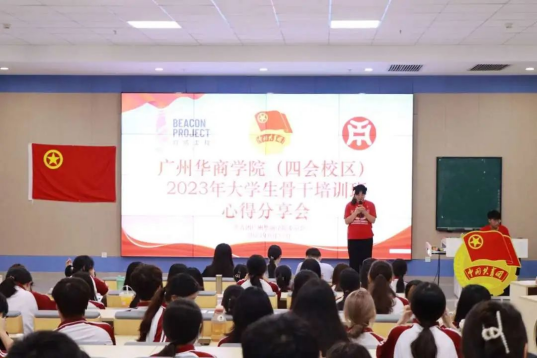 为深入学习贯彻党的二十大精神,学习习近平新时代中国特色社会主义思想的世界观和方法论,以积极向上的精神面貌投身祖国建设,为实现中华民族伟大复兴的中国梦贡献力量。我校团委于 2023年6月15日中午12:30 在广州华商学院四会校区的 8号楼108 举办了 2023年大学生骨干培训班心得分享会。