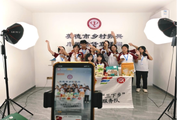 7月9日下午,团队来到英德市女企业家协会再次直播带货。我们在直播间进行展台布置、灯光效果等工作,也在后台充分了解农特产品的资料。队员们在直播间热情地介绍各种英德土特产,并积极与网友们互动,展示团队在三下乡活动中的实践环节。为了使农产品得到更多销量,我们突发灵感,通过合唱来吸引观众。这次直播最终取得了不错的效果。团队精神感染了观众们,直播也获得了更多流量。