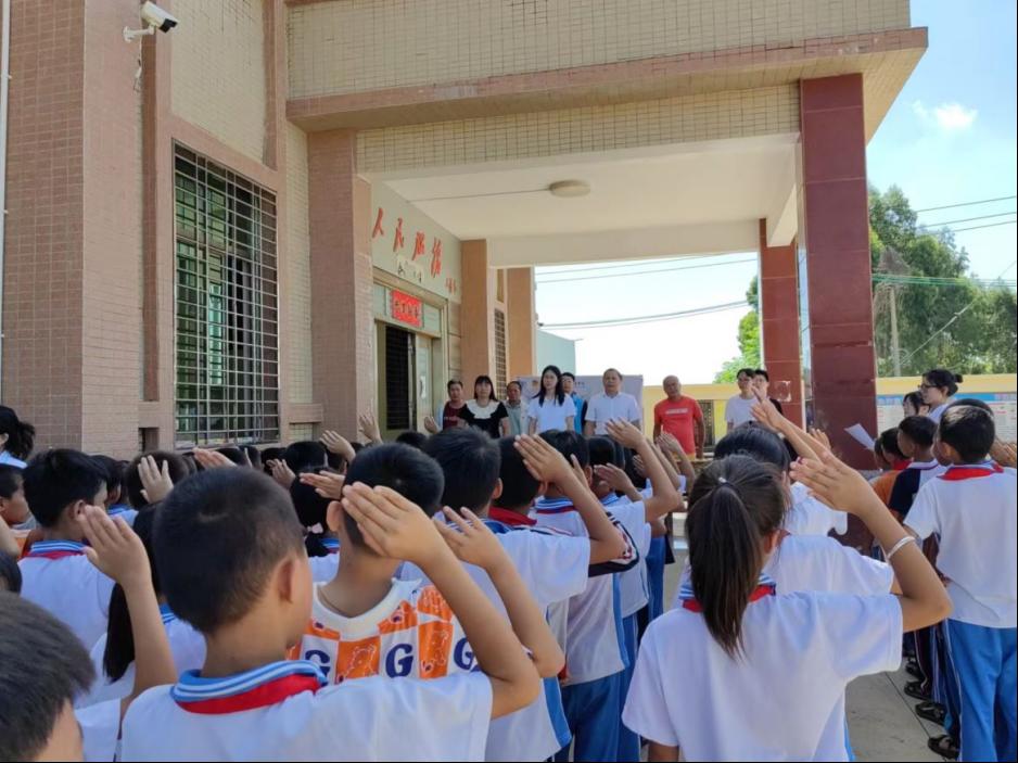 7月10日,广州华商学院“雷”响青春,暖心助学社会实践队联合中国共产主义青年团雷州市委员会、中国共产主义青年团雷州市附城镇委员会、大埔村中学校、大埔村村委会在大埔村中学校隆重举办了“雷”响青春,暖心助学社会实践活动启动仪式。开学第一课是我们教育的重要环节,也是我们对学生进行思想教育的一个契机,更是我们开学的一门必修课。希望通过此次活动,顺利开展新支教活动的光明之路。大会开始,全体起立,奏唱国歌,行注目礼,少先队员敬礼。中国共产主义青年团雷州市委员会代表韩成主任、大埔村中学校黄忠如校长、中国共产主义青年团雷州市附城镇委员会代表、指导老师韦秋钰、实践队队长宋前通等人依次进行发言。