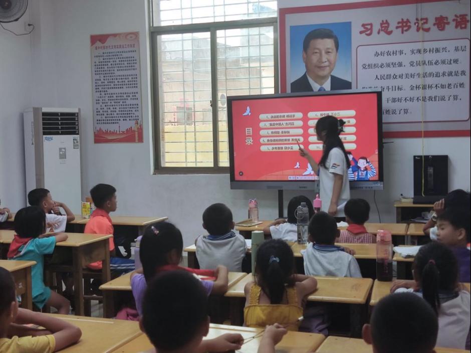 为了让学生们更进一步地了解红色文化,延续红色血脉,传承红色基因,“雷”响青春,暖心助学社会实践队开展了《红色文化》、《红色故事》课程。实践队队员跟学生讲述艰苦卓绝的革命斗争史,培养学生的爱国主义、革命精神和社会责任感。实践队队员以图文结合的方式生动地讲述革命英雄的故事,让学生们学习英雄们英勇无畏、乐观的精神品质。