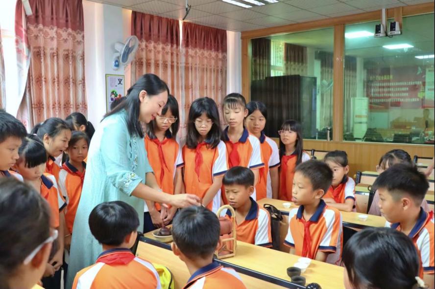 7月4日上午,广州华商学院“青衿萤火”社会实践队在共青团广州华商学院委员会、共青团揭东区委员会、揭阳市华勋慈善会等社会人士的大力支持下,携同揭阳潭王蓝康红军小学举办了“发扬蓝康精神,绘制乡村蓝图” 暑期社会实践活动启动仪式。仪式结束后,团队志愿者古晓和陈家涛开展了安全班会课,师生间进行了自我介绍,志愿者们还为同学们颁发了见面礼。同时与学生介绍接下来的课程安排及上课注意事项、安全问题,增强学生的安全意识。班会课结束后,广州华商学院“青衿萤火”社会实践队邀请了“潮汕工夫茶”非遗传承人廖晓鸿、魏晓瑜和“面塑”非遗传承人林翠为潭王蓝康红军小学的学生讲授非遗文化知识,同学们对非遗课程非常感兴趣,上课认真听讲。