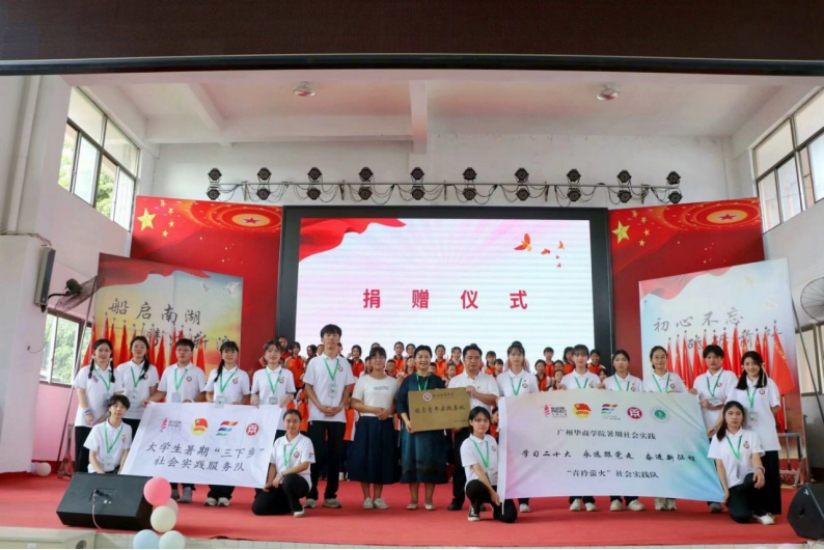 广州华商学院“青衿萤火”社会实践队与揭阳潭王蓝康红军小学、揭阳市华勋慈善会分别建立两个“团员青年实践基地”,为开展长期社会实践打下坚实基础,用实际行动践行初心使命,以奋进姿态献礼党和人民。