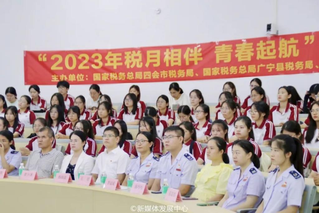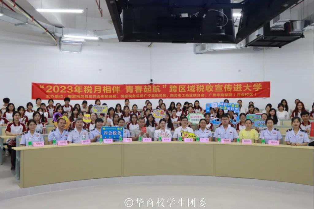 为助力大学生走稳走好创业就业第一步,推进校园税收普法教育和学生税收实践相融合,9月20日,国家税务总局四会市税务局、国家税务总局广宁县税务局、四会市工商业联合会联合我校开展的2023年“税月相伴,青春起航”跨区域税收宣传进大学活动顺利举办!本次活动的与会人员有:广州华商学院校长助理、四会校区党委副书记、管委会常务副主任覃少冰,四会市税务局党委委员、副局长杨炳歆,四会市工商联会员部部长梁金洪,广宁县税务局第一税务分局局长王培以及税务局、工商联、广州华商学院(四会校区)其他的有关同志。