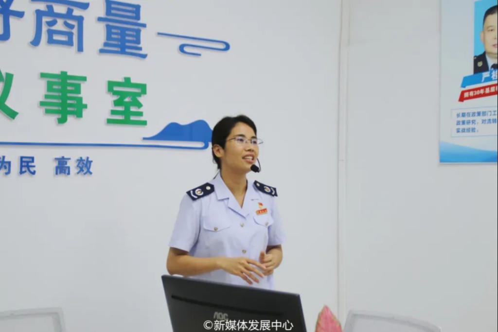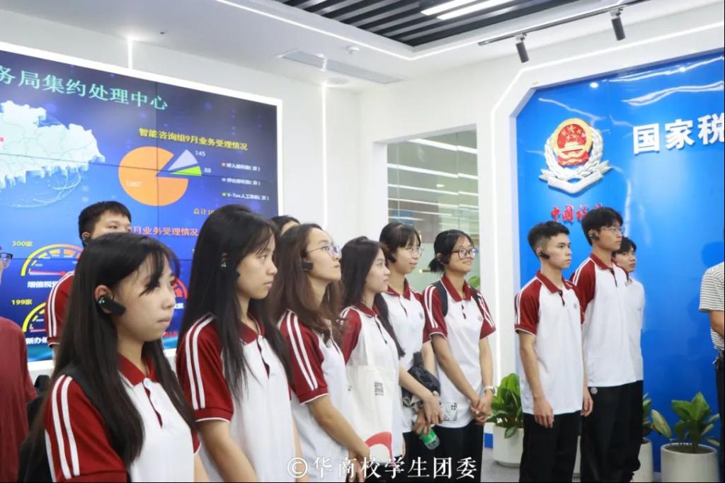 ——税务体验环节。在税务体验环节,大学生代表还来到四会市税务局智慧办税服务厅,在税务人员介绍下详细了解智慧办税服务厅功能区设置,以及“非接触式”税费服务新举措,现场观摩“发票代开”“证明打印”等税务业务办理流程,通过V-TAX远程可视化办税沉浸式地体验税务部门智能化办税服务。