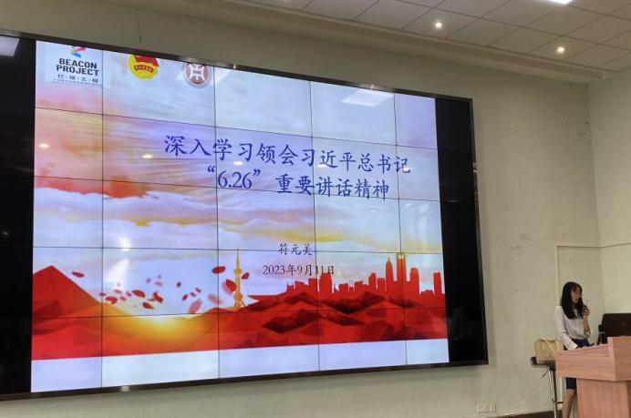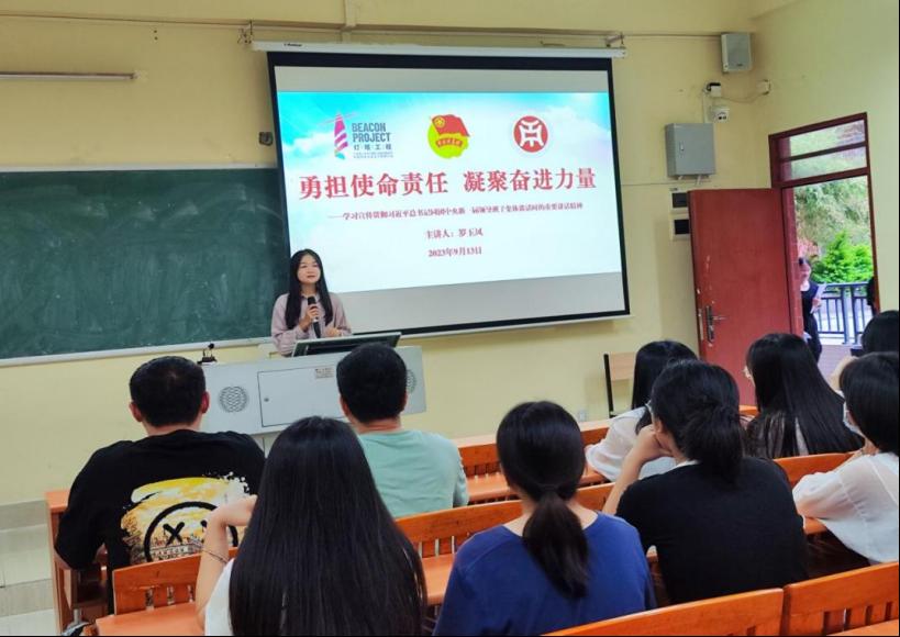 2023年6月26日,习近平总书记同团中央新一届领导班子成员集体谈话并发表重要讲话。高度评价了党的十八大以来青年工作的重大成就和深刻变革,充分肯定了过去五年共青团工作的成绩,深刻阐明了新时代中国青年运动和青年工作的主题和方向,明确了新时代新征程共青团的主要任务。为深入学习习近平总书记重要讲话精神,全面把握习近平总书记重要讲话的核心要义,鼓励团员青年在新时代、新征程上踔厉奋发、勇毅前行,外国语学院团委于9月13日增城校区厚德楼C204,9月20日在四会校区8号楼605分别组织开展了学习习近平总书记在同团中央新一届领导班子集体谈话时的重要讲话精神主题团课。两位老师鼓励同学们要筑牢理想信念根基,坚定理想信念,增强四个意识,补足精神之钙。要练就过硬本领,珍惜青春韶华,高扬实干奋斗之帆,坚持在学中干、在干中学,不断提升自己的本领水平,成为可堪大用、能担重任的栋梁之才。