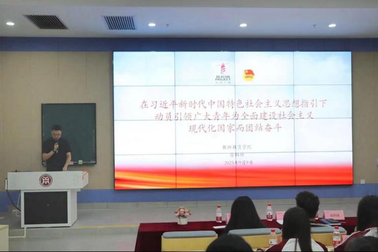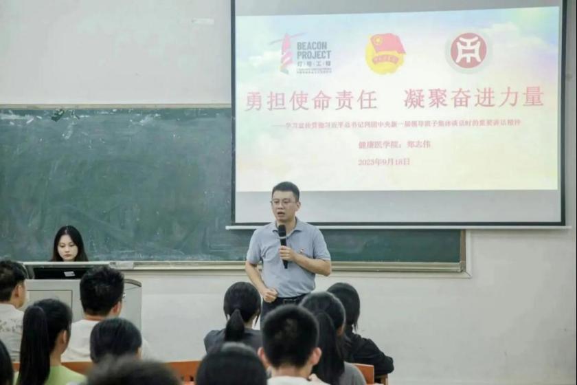 为了更好地学习、宣传、贯彻习近平总书记的重要讲话精神,广州华商学院健康医学院于2023年9月18日下午3:00在励志楼C101开展了主题为“勇担使命责任,凝聚奋进力量”的主题团课。健康医学院各学生组织骨干、各班学生代表参与本次会议。郑志伟老师带领同学们细致解读了习近平总书记的重要讲话内容,一览共青团和青年工作的变革历程,深度剖析党中央对共青团工作的新要求,并针对培养什么样的青年、建设什么样的共青团两个问题做出基本概要。郑志伟老师对同学们提出三点嘱托与期望:第一,团结奋进,踔厉向前争做先锋;第二,实干担当,脚踏实地服务为民;第三,钻研学业,精益求精奉献社会。他希望各学生组织骨干、各班学生代表能够将所学习的内容付诸于实践,以实际行动担当青年责任,以刻苦努力建设国家。