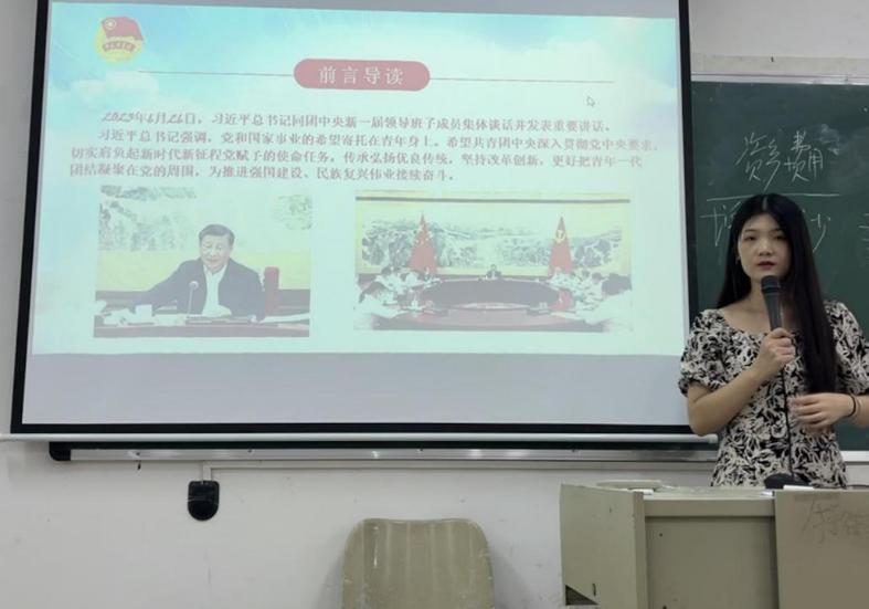 数据科学学院团委书记谢嘉希、学生会指导老师王璐带领大家共同深入学习领会习近平总书记同团中央新一届领导班子成员集体谈话精神。团课中,谢书记强调作为学生团员青年,要坚定理想信念。要学深悟透习近平新时代中国特色社会主义思想,努力掌握这一科学思想的世界观和方法论,善于运用贯穿其中的立场观点方法分析问题,在知行合一、学以致用上下功夫,保持守初心的定力。团委副书记王怡时在四会校区带领学生团员学习习近平总书记在同团中央新一届领导班子集体谈话时的重要讲话精神以及团的十九大精神。他呼吁大家要加强自身建设,发挥好模范带头作用,推动共青团事业和青年工作实现新的更大发展。必须紧紧围绕党的二十大确定新时代新征程党的中心任务来开展工作,把握方向,奋发有为。