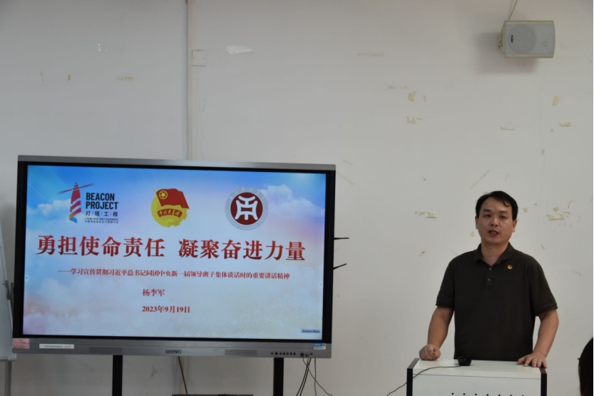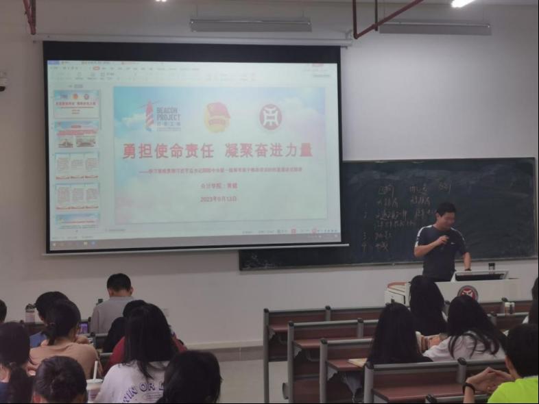 9月19日,国际学院团委在启智楼405教室开展“勇担使命责任,凝聚奋进力量”的主题团课活动,本次团课由国际学院团委书记杨李军老师主讲。旨在激发青年学生的勇于担当精神,为实现中华民族伟大复兴贡献力量。此次团课活动主要围绕学习贯彻习近平总书记同团中央新一届领导班子成员集体谈话时发表的重要讲话精神。通过讲解、分析、现场问答等形式,引导青年团员深入思考如何在实际工作中践行使命,如何更好地发挥个人优势,如何为团队贡献力量。杨书记用生动的语言、具体的案例和实践经验,阐述了使命责任的重要性。同时,结合国际学院实际情况和未来发展方向,强调了团队协作、创新创业、担当精神等方面的关键作用。他还鼓励青年团员要勇于担当责任,积极探索创新,不断提升自身素质和能力。