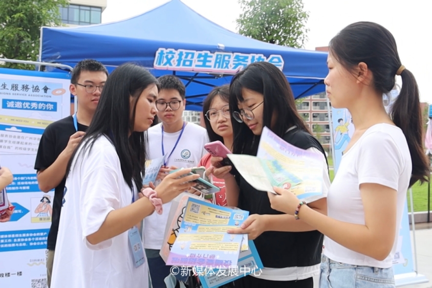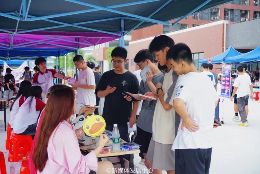 工作人员们热情十足、耐心细致地为每一位来到现场的小萌新们解答回应。他们忙碌地穿梭在人群中宣传自己的部门,卖力地叫喊着一声声“同学你好,这里是XX学生组织,很高兴与你相遇呀”。
